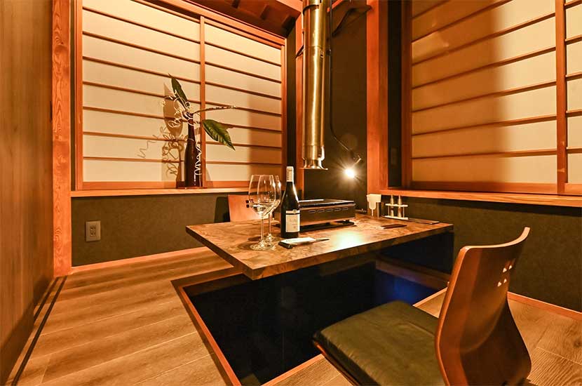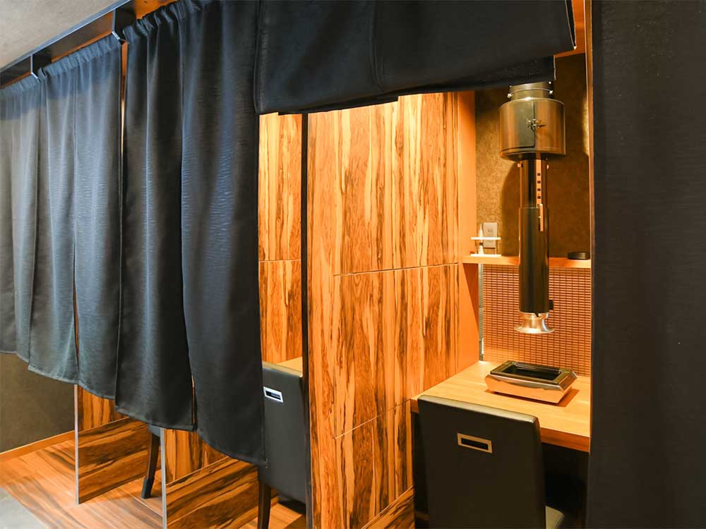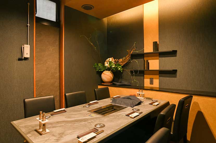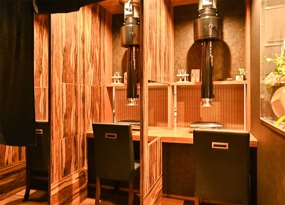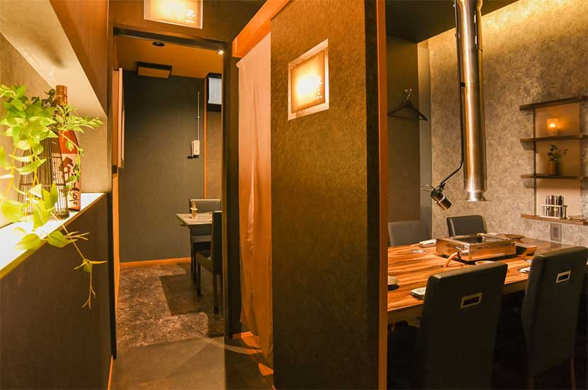 店内は、全席個室で、仕切りを設置したカウンタ―ではお一人焼肉も楽しむことができます。仕切りを外せる個室もあり、最大17名を1部屋に御案内可能。日常の会食や接待、誕生日や記念日などの特別なシーンでもご活用ください。ご来店をお待ちしております。